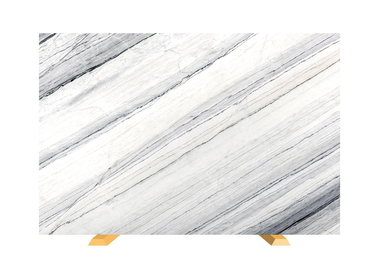 This marble features a crisp white background accentuated by striking grey linear veining that flows diagonally across the slab, creating a dynamic, contemporary look. The clean lines and natural contrast give it a modern aesthetic while maintaining the timeless appeal of marble. Available in polished, honed, leathered, or any other suitable marble finishes, this stone offers flexibility in design, from sleek minimalism to bold statement pieces.
