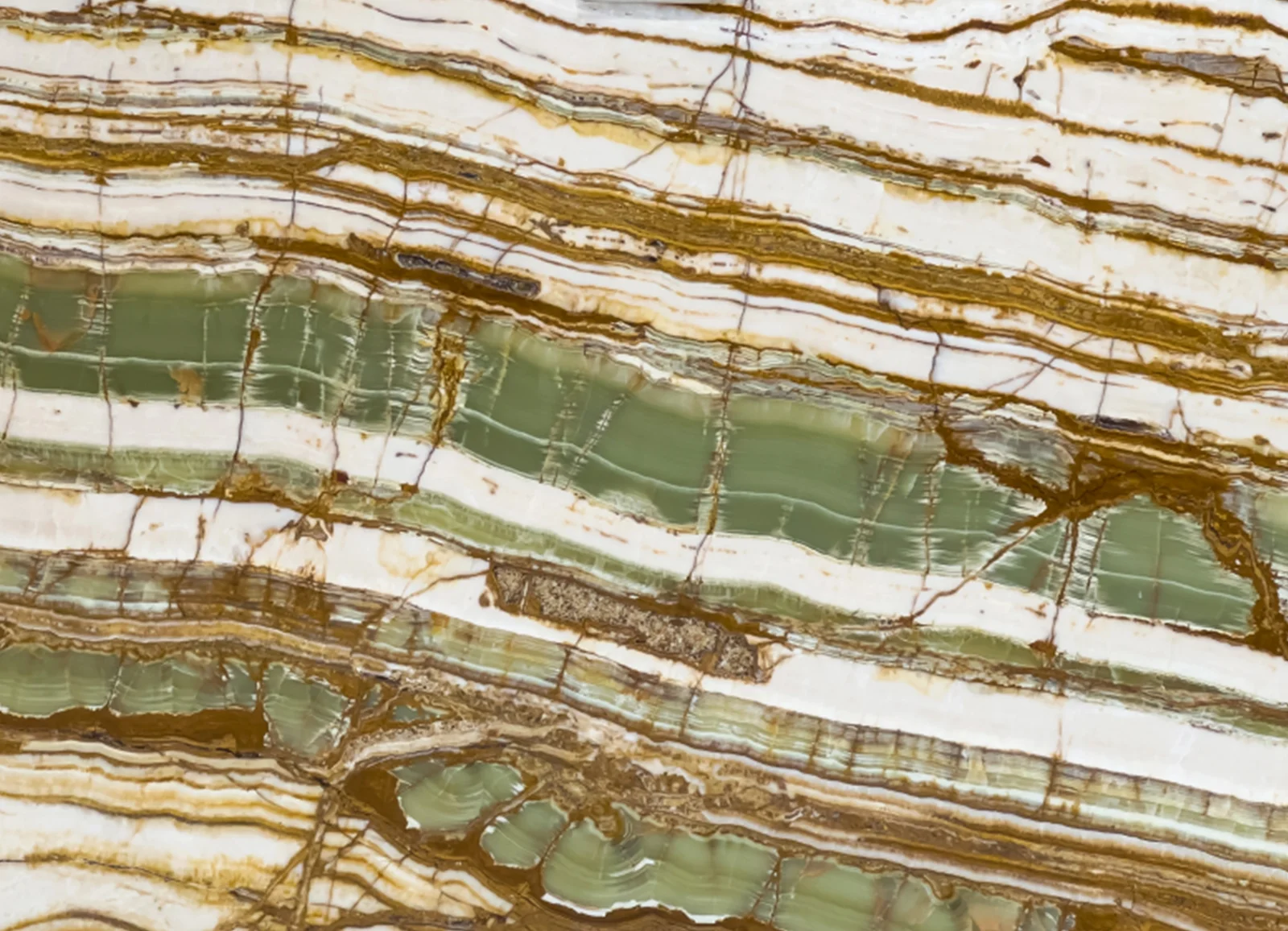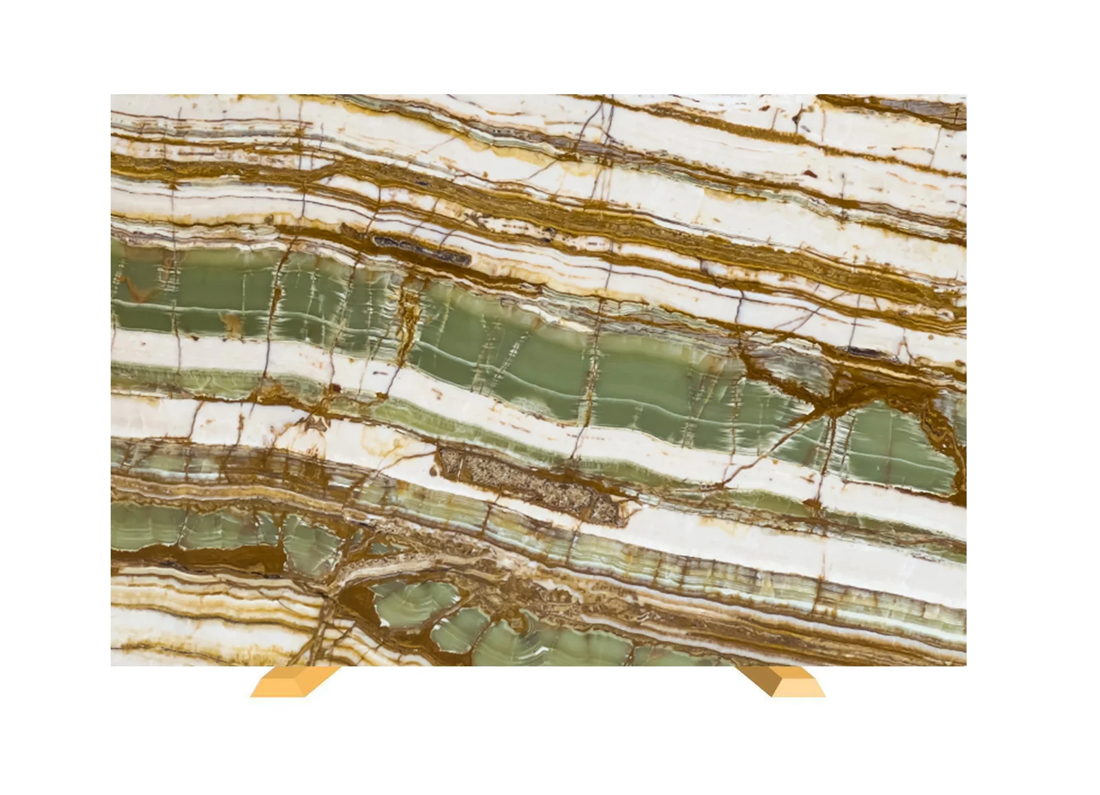 This Onyx stone features mesmerizing green tones with intricate cream, brown, and white linear veining, offering a sophisticated and natural aesthetic. The polished finish accentuates its translucence and vibrant color layers, making it an eye-catching choice for statement walls, fireplace surrounds, and luxury furniture. Its unique patterns bring a touch of elegance to any space.