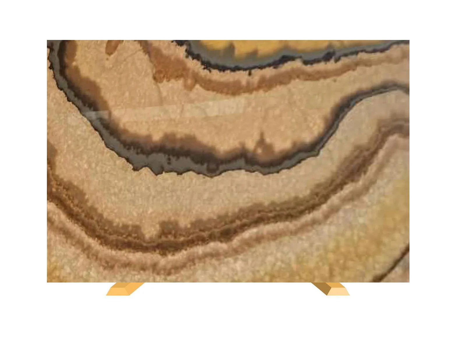 This Onyx stone showcases a stunning blend of cream, beige, and brown tones, accentuated by dark grey veining and natural layered patterns. The polished finish amplifies its translucence, making it a striking choice for luxurious interiors such as feature walls, countertops, and fireplace surrounds. Its unique, wave-like formations bring an organic, yet sophisticated feel to any space.