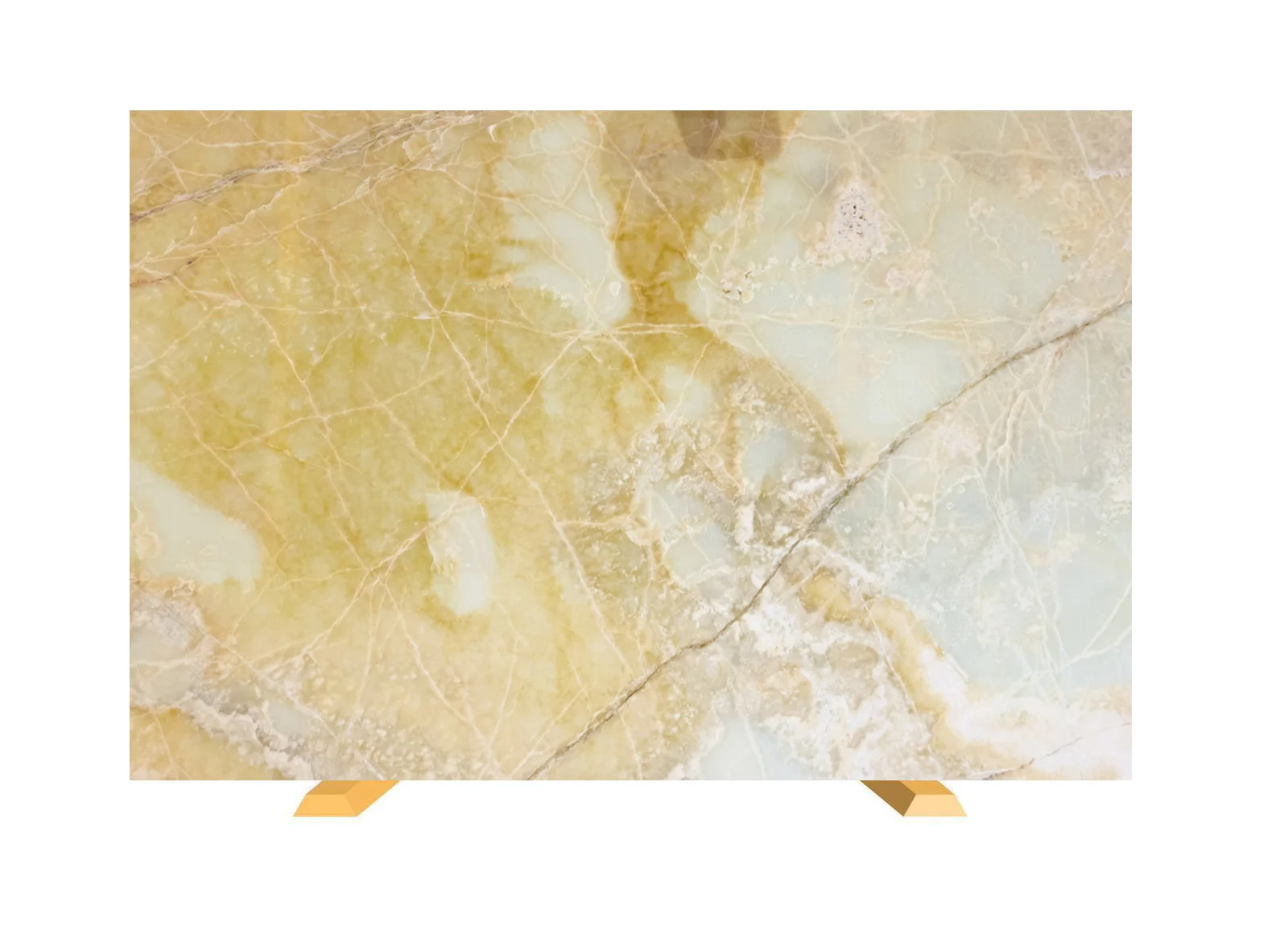 This Onyx stone displays a captivating mix of golden yellow hues intertwined with soft white veining, creating a warm and radiant aesthetic. The polished finish amplifies its natural translucence, making it an ideal choice for luxurious interiors such as bathroom vanities, feature walls, and fireplace surrounds. Its soft, glowing appearance brings a touch of elegance and sophistication to any space.